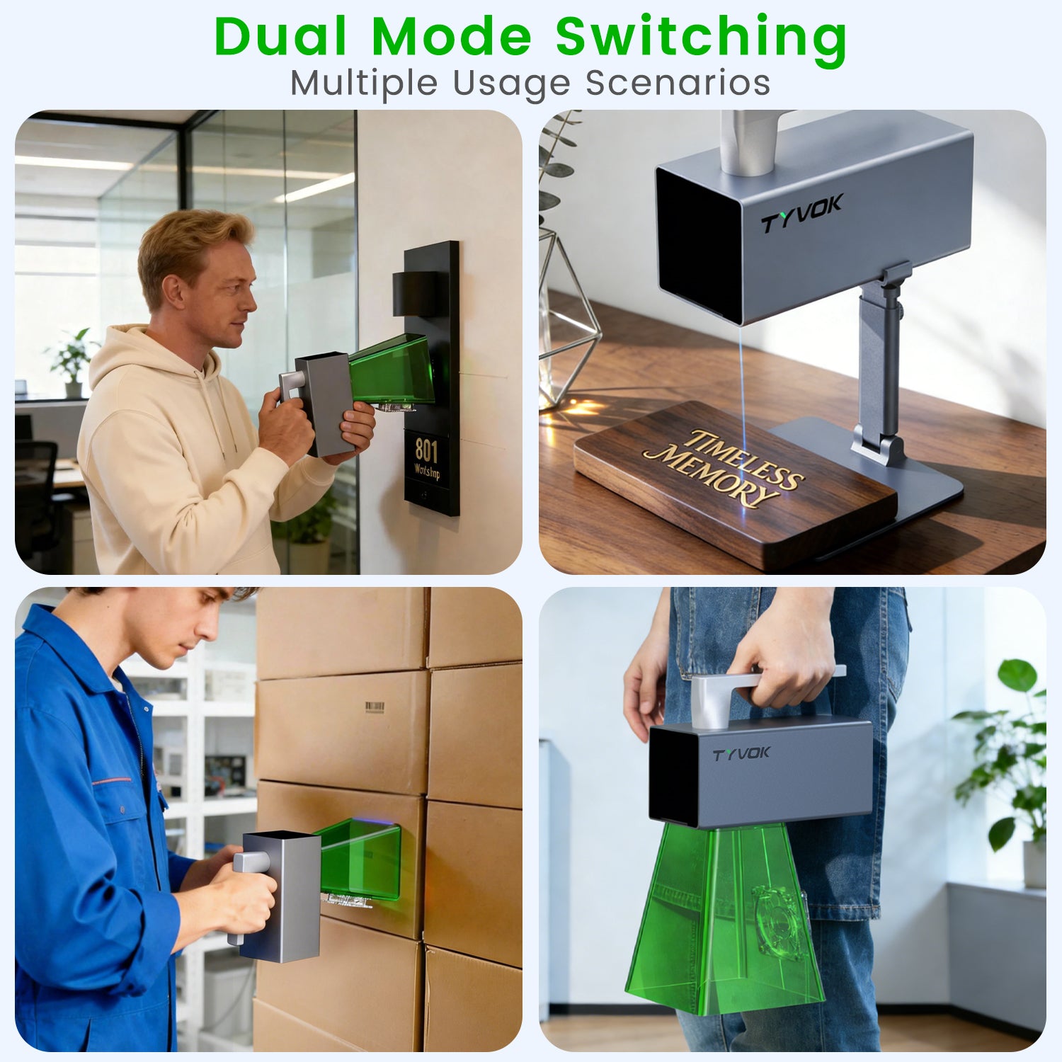 Switch Between Handheld and Fixed Modes for Easy Laser Engraving